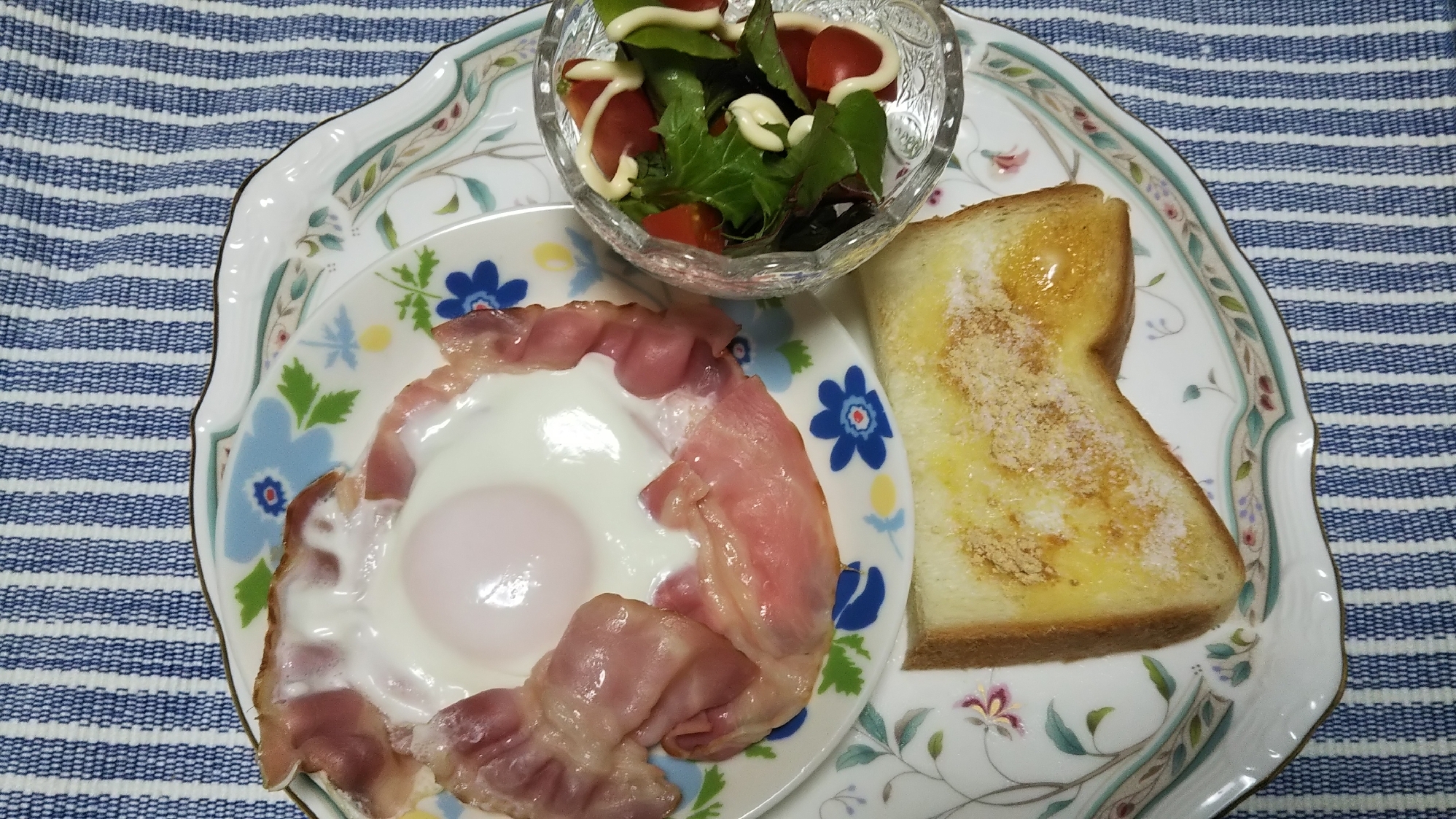 ベビーリーフサラダとベーコンエッグとトースト レシピ 作り方 By ミニー7015 楽天レシピ